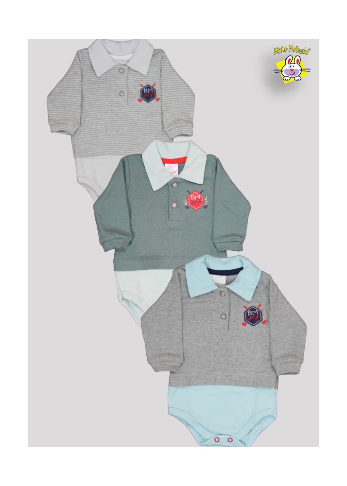 BODY SUED. POLO M/L BORD. GOLF (O)