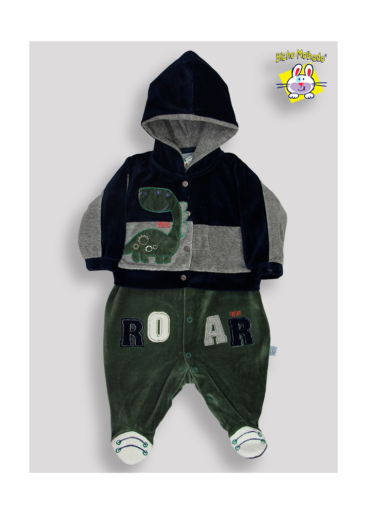 MACACAO.PL BORD. + CASACO PLUSH C/ CAPUZ BORD.DINO (O)