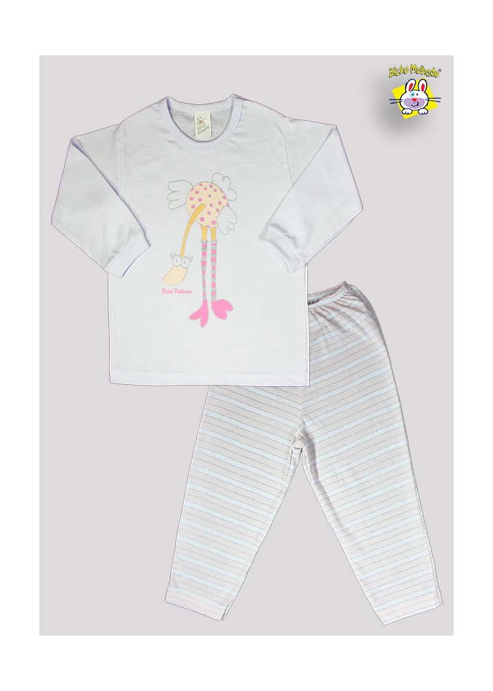 CONJ PIJAMA BLUSA M.MALHA M/L EST. AVESTRUZ + CALCA MALHA DE FIO TINTO 1 AO 8 (A)