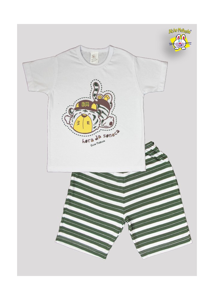 CONJ PIJAMA CAMISETA M.MALHA M/C EST. HORA DA SONECA + SHORTS MALHA DE FIO TINTO 1 AO 8 (O)