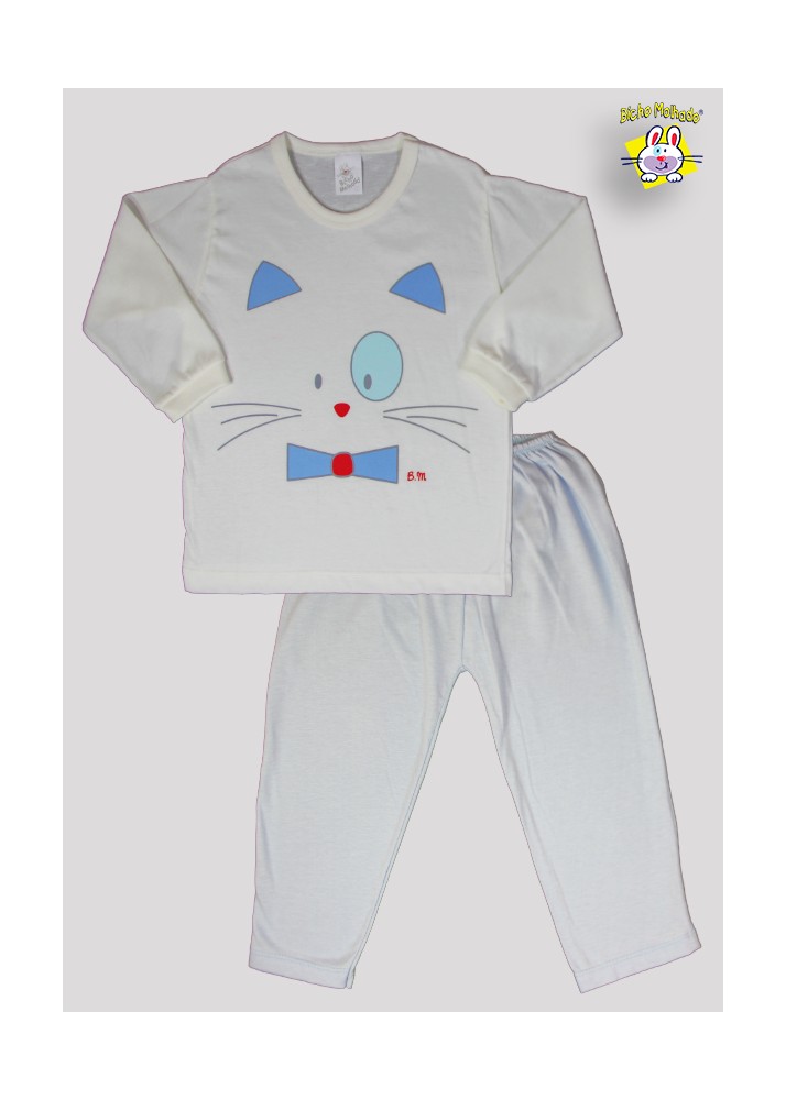 CONJ PIJAMA BLUSA M.MALHA M/L EST. GATO + CALCA EST. MIAU 1 AO 8 (O)
