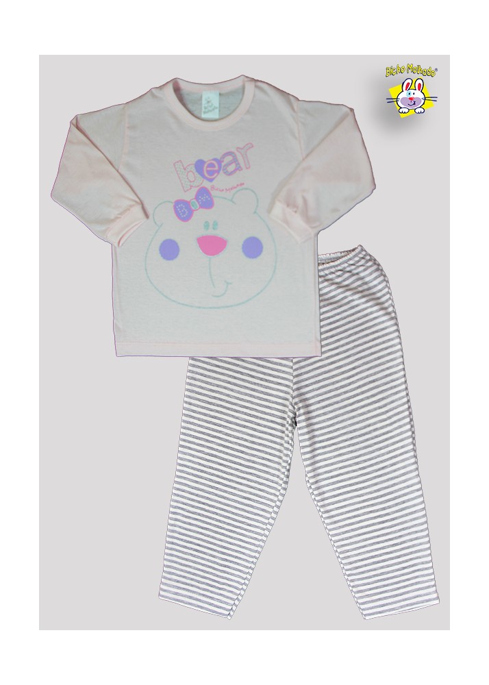 CONJ PIJAMA BLUSA M.MALHA M/L EST. BEAR + CALCA MALHA DE FIO TINTO 1 AO 8 (A)