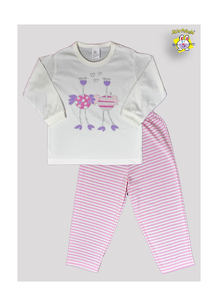 CONJ PIJAMA BLUSA M.MALHA M/L EST. DOIS AVESTRUZ + CALCA MALHA DE FIO TINTO 1 AO 8 (A)